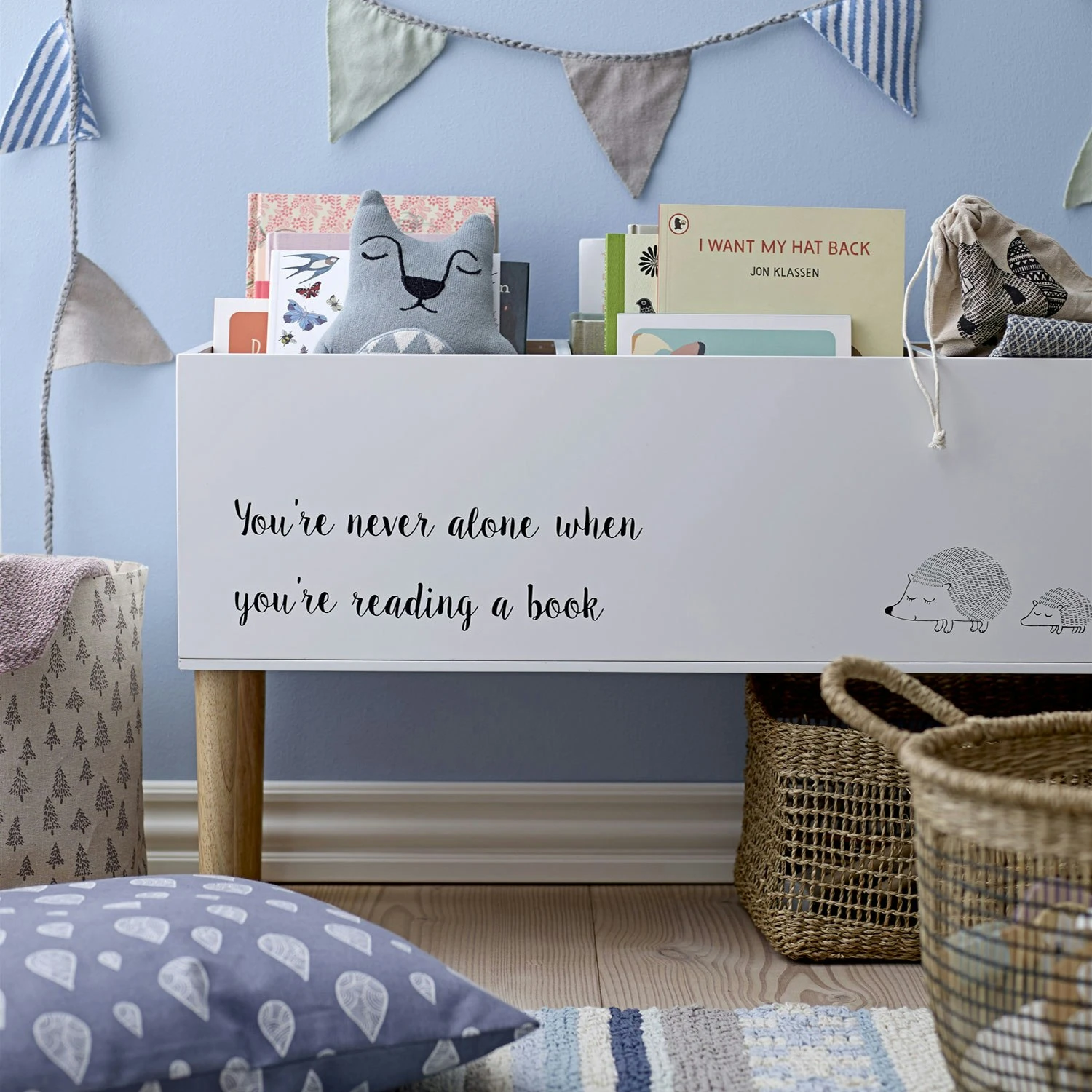 Browser Box and bookshelf for children´s books from Bloomingville Mini. Also great for storing and organising toys.