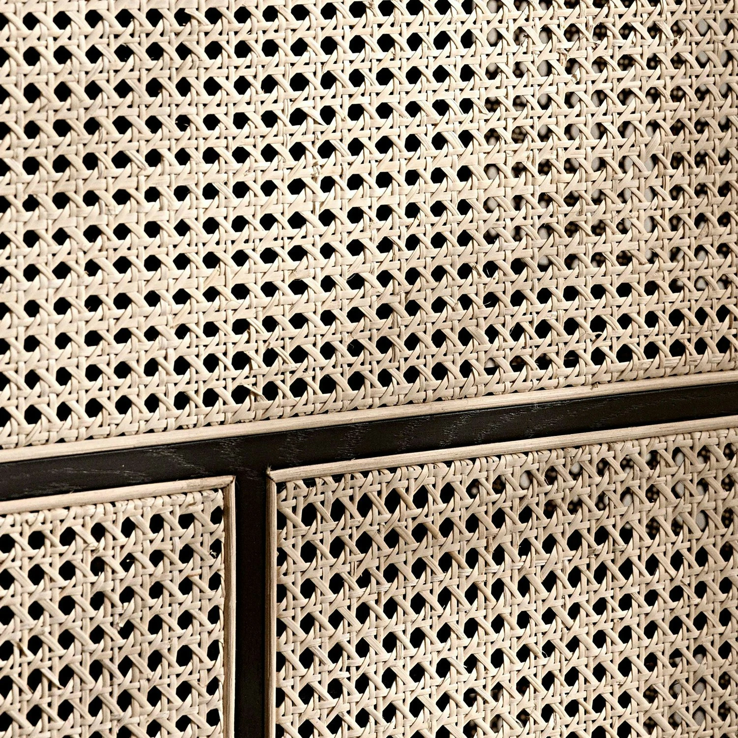 Air, designed by Mathieu Gustafsson for Design House Stockholm. Air is a sideboard for the centre of the room. It combines a graphic pattern of ribs with natural cane inlays which gives a feeling of lightness and transparency. Air can be used as freestanding room dividers or placed against a wall.