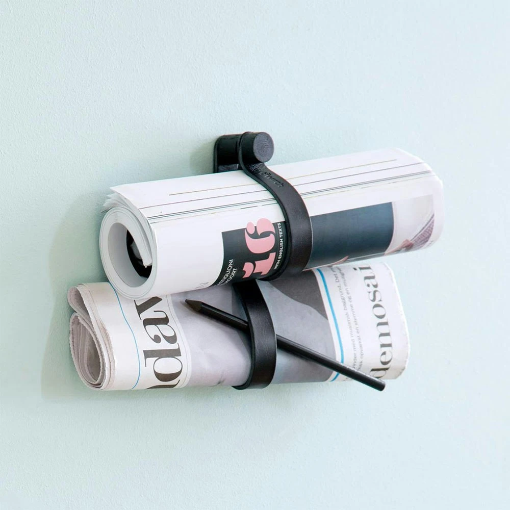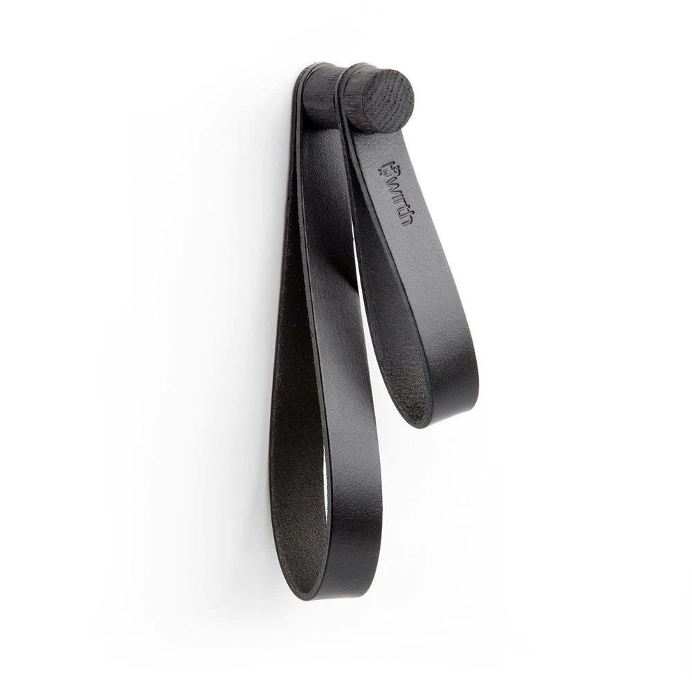 Double Loop from by Wirth. This device can be used in many different ways. Double Loop has a hook made of oak with two leather rings that you can hang in a small group or alone. Double Loop can be used in the hall like a small clothes rack, in the kitchen for your tea towels, to newspapers or as a reminder of the sunglasses when you go out – only your imagination can stop you!