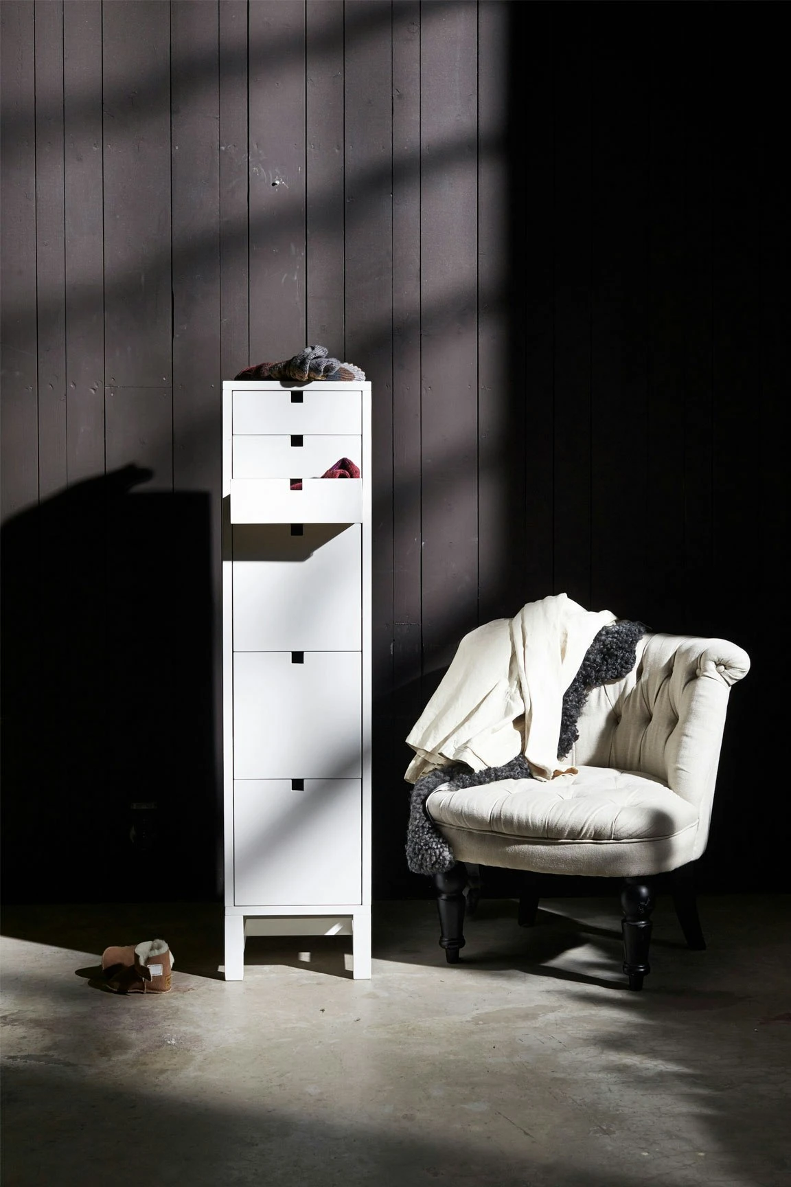 This chest of drawers with six drawers comes from Mavis popular series Falsterbo which contains a variety of different storage furniture for the home. This chest of drawers is a clean and minimalist piece of storage furniture that fits perfectly as a complement for the closet or perhaps as hall furniture.
