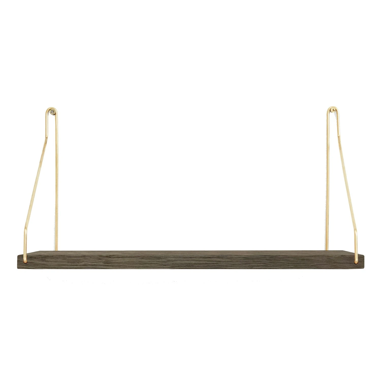 The shelf is made of dark oiled solid oak and the brackets are available in brass or black lacquered steel. Choose between different widths and depths.