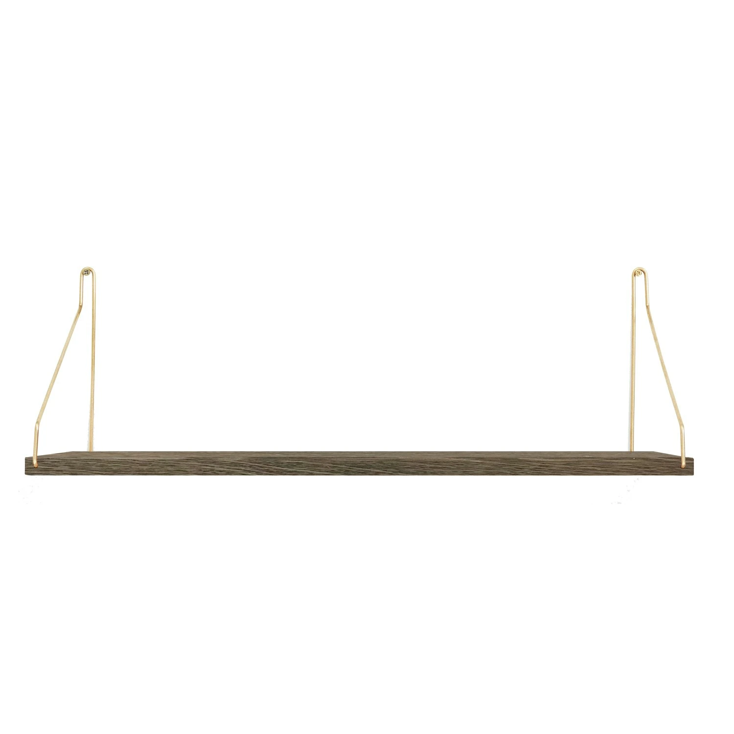 The shelf is made of dark oiled solid oak and the brackets are available in brass or black lacquered steel. Choose between different widths and depths.