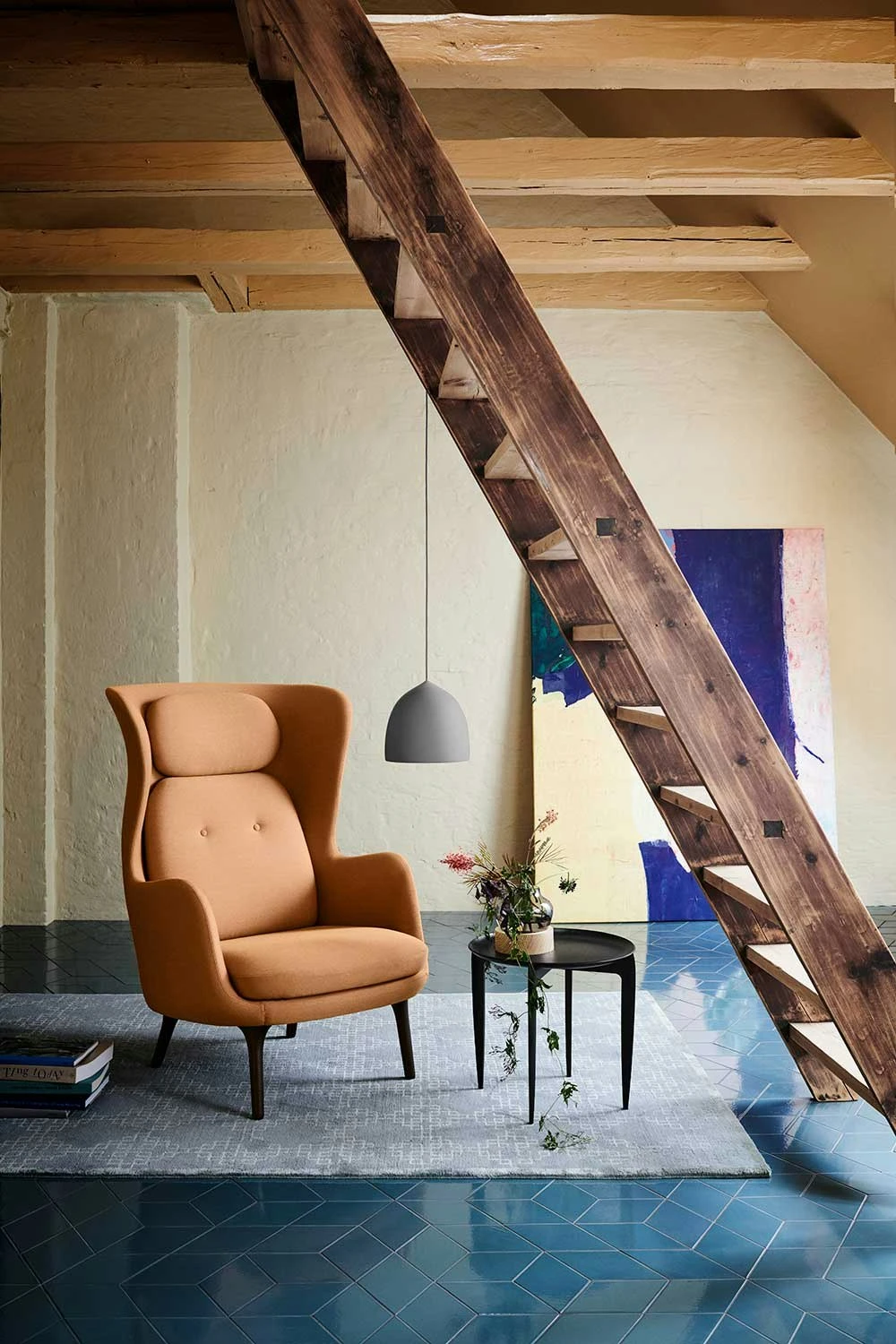 Tray Table from Fritz Hansen. This table was designed back in 1958 by Willumsen & Engholm. The elegant base is foldable and the tray is made of cast veneer – the same material used in the manufacture of the classic chair Sjuan. Choose from oak or black lacquered oak.