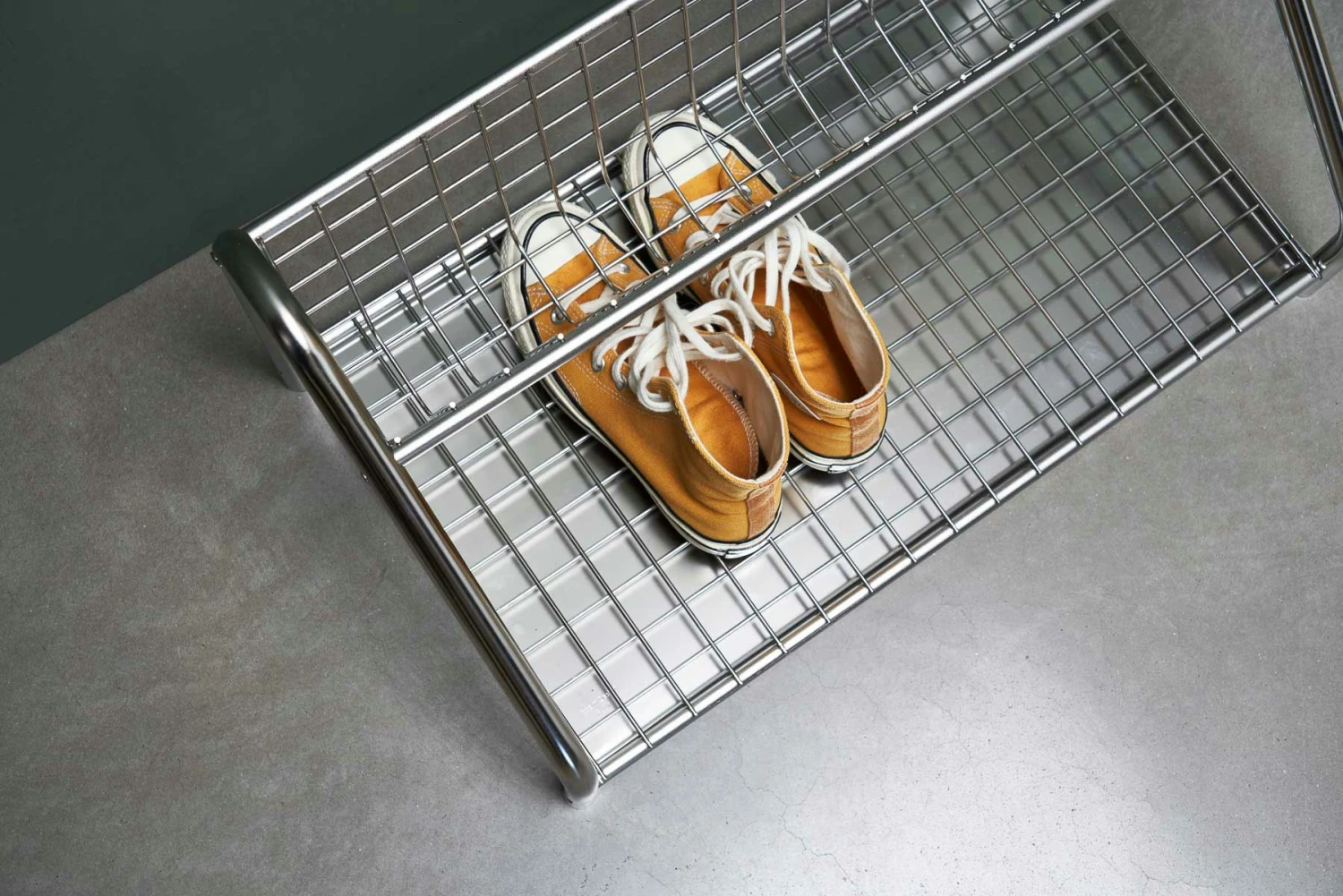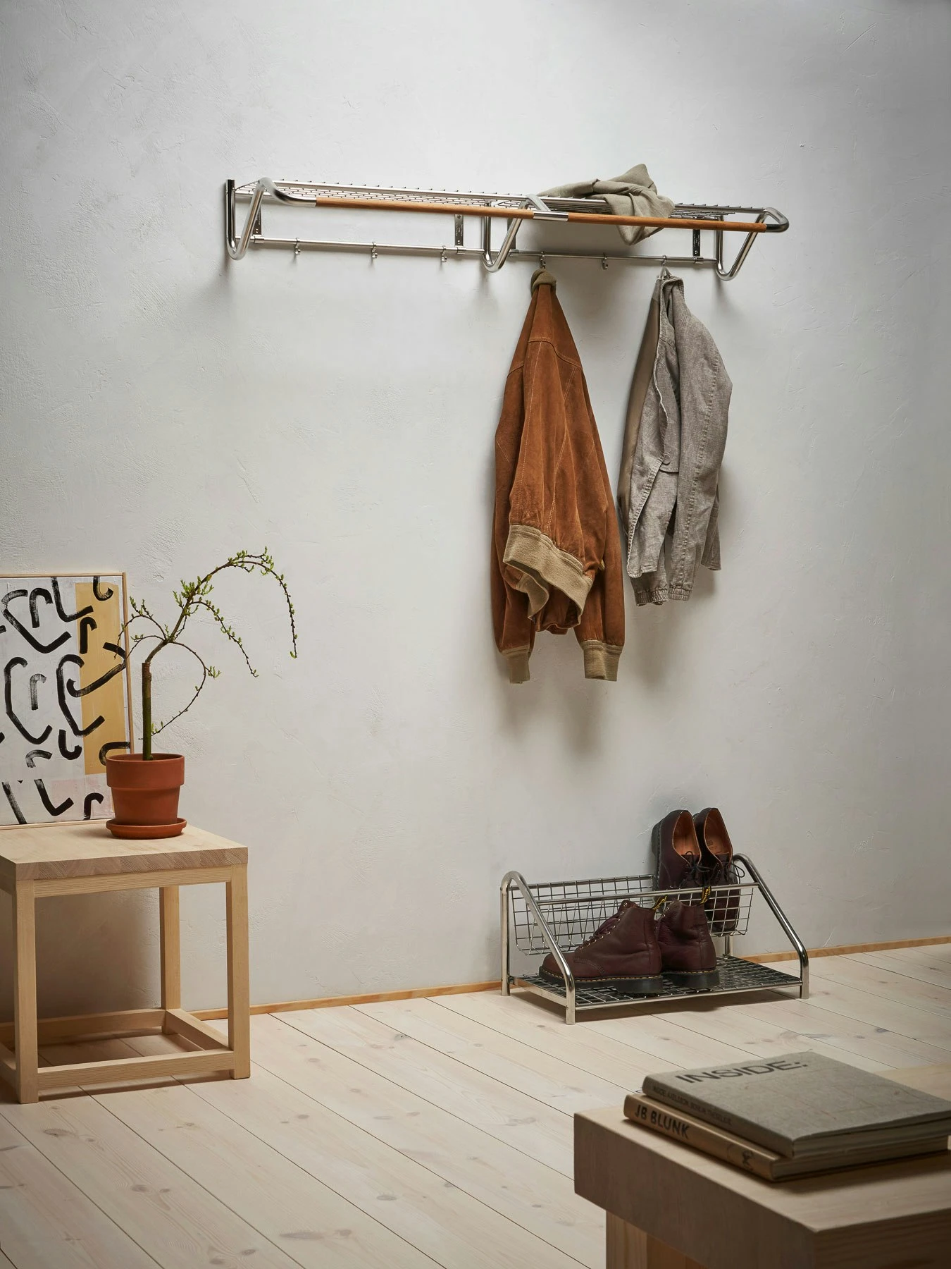 – Combine the shoe rack with a Funk hat rack from Essem Design.