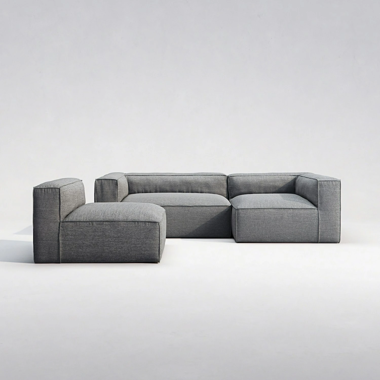 Grand 3 Seater Sofa Divan Right With Armchair Outdoor, Charchoal Chiné