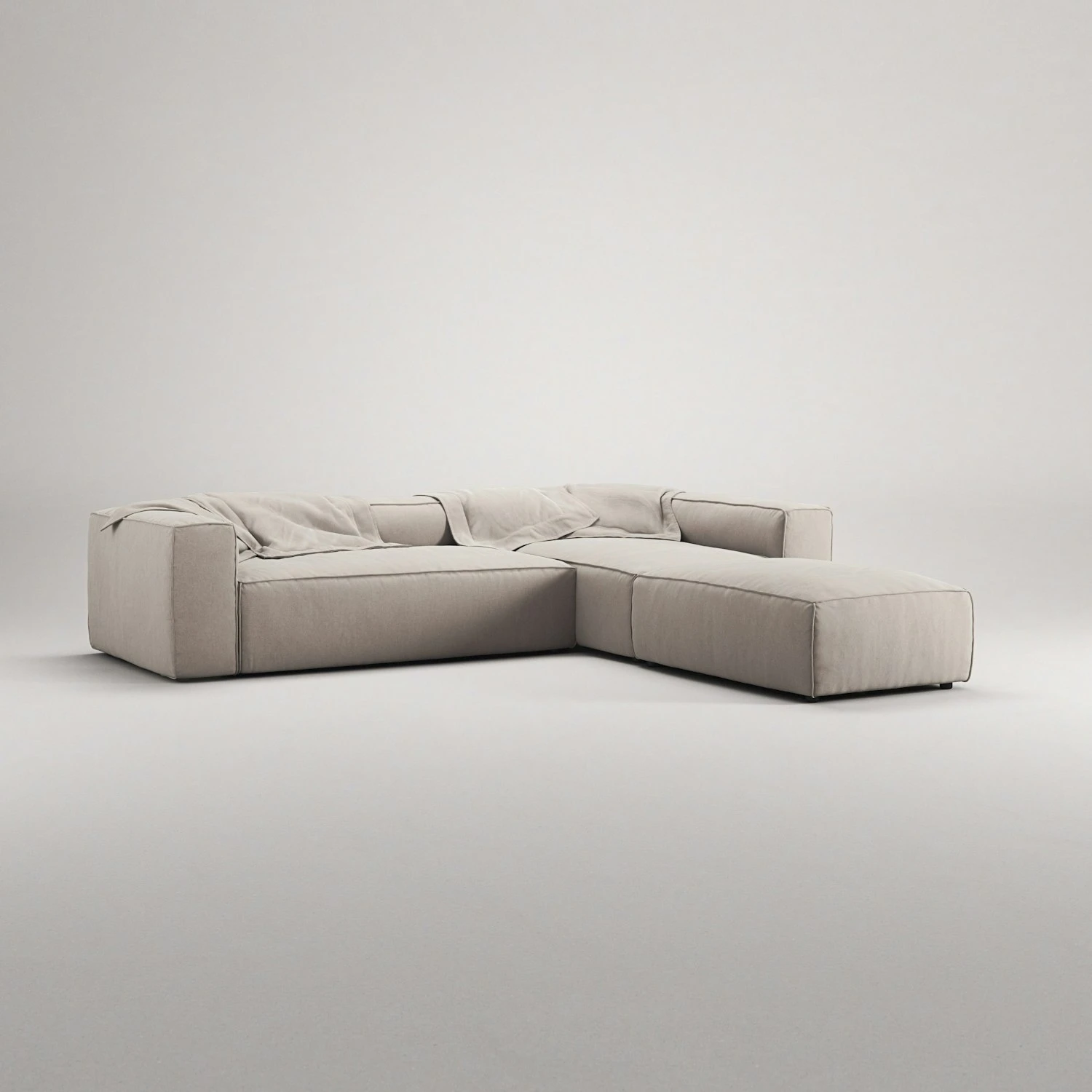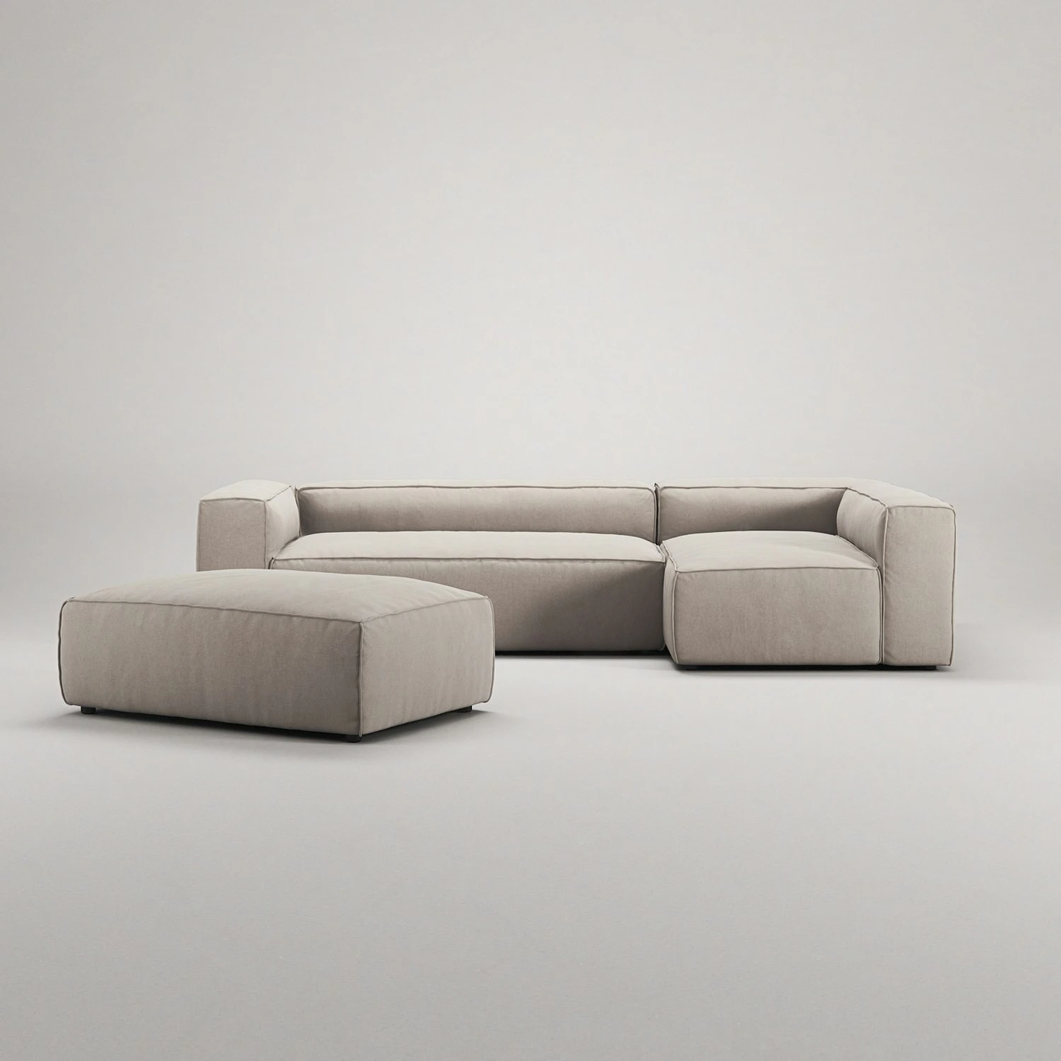 Grand 4 Seater Sofa Divan Right Open End Piece With Footstool, Sandshell Beige