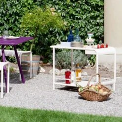 Guinugette Rolling Table Ø40cm is a charming little table that can be used for most things. Maybe like a small drink cart, like a pedestal for flowers or just to put the afternoon coffee on. The table is made of steel and has a UV resistant powder coating. It has a pretty design that is easy to move around where you want it for the moment.