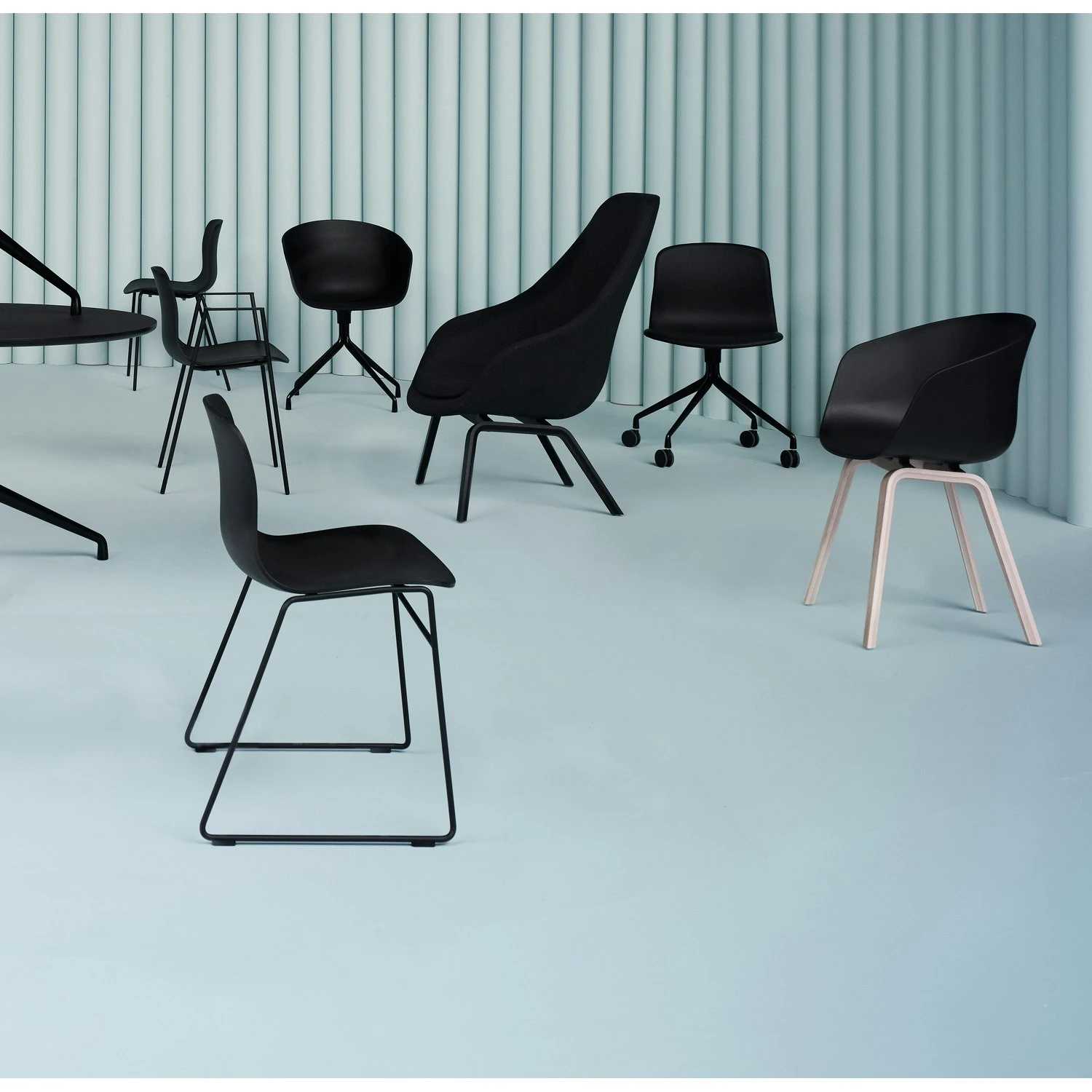 About A Chair 22 is a chair from Danish Hay that radiates the functional simplicity that is characteristic of the entire series. The chair consists of a curved back with armrests in polypropylene which provides excellent comfort and a soft uniform silhouette as well as a four-legged wooden base with classic expression that guarantees stability and long service life. Available in different colours.
