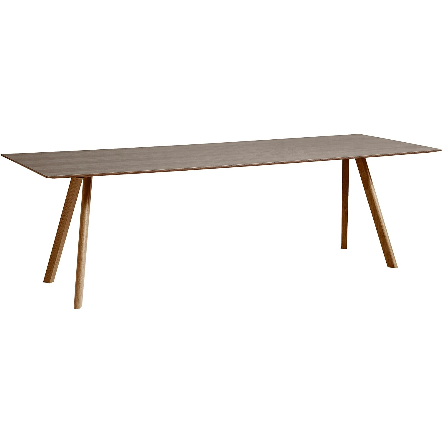 – Rectangular, versatile table with slanted legs.
