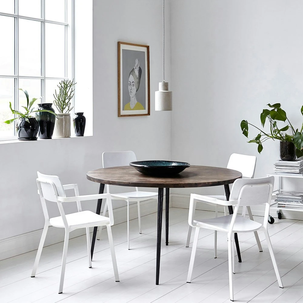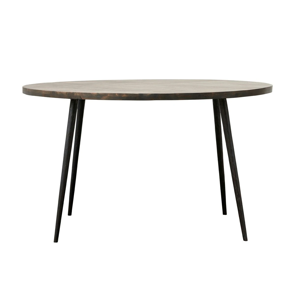 Club dining table from House Doctor. A round table with a rustic and robust design, with a table top of mango wood and iron legs. Create a ground-level feel in your kitchen with this dining table. Choose between black stained or natural tabletop.