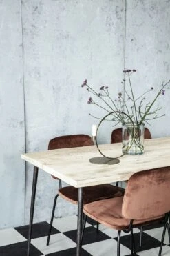 Slated table from House Doctor. The Slated table is a beautiful dining table fit for two. The surface of the table has a rustic surface made out of mango wood which gives a personal touch and a warm atmosphere. Together with the raw metal legs it gives the table a industrial twist. Perfectly made for a smaller kitchen or for a Café.