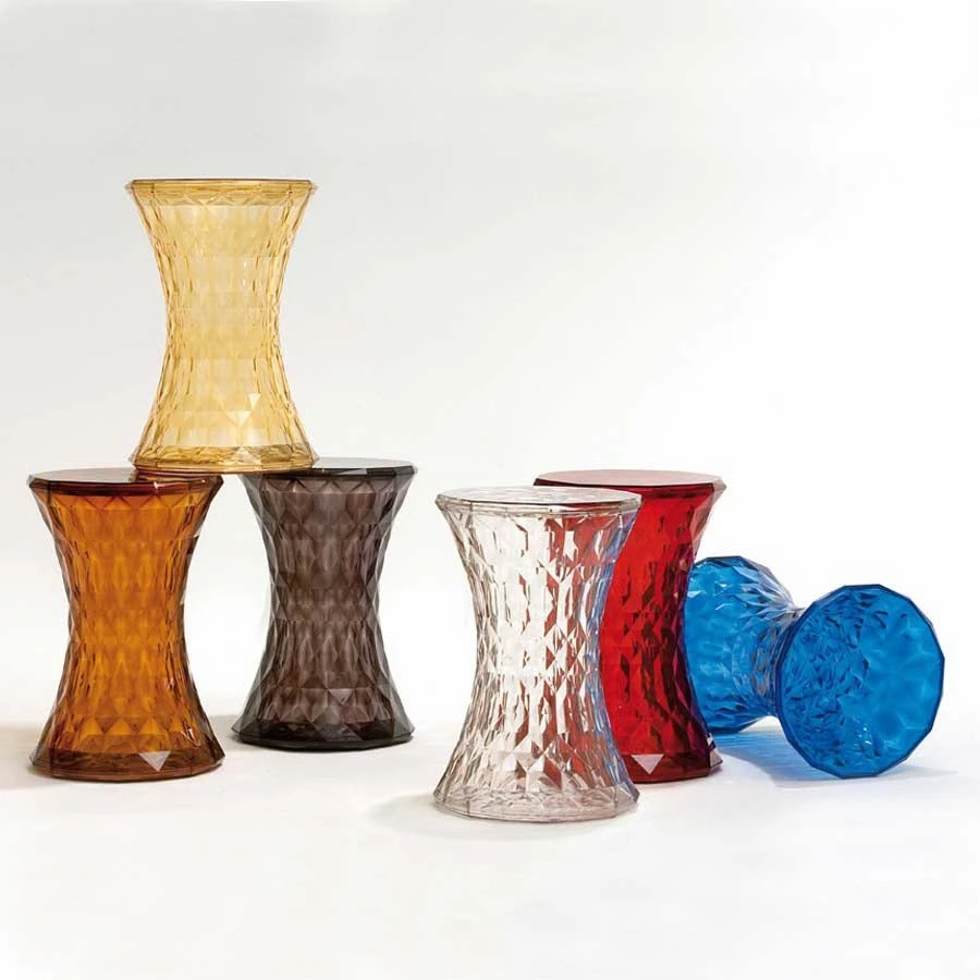 Stone from Kartell, designed by Marcel Wanders. Stone is a stool with a classic hourglass shape and a very beautiful surface. The stool is made of polycarbonate with smooth surfaces on the top and bottom while the body is faceted in a unique diamond-like pattern. Suitable for both indoor and outdoor use. Available in several colours.