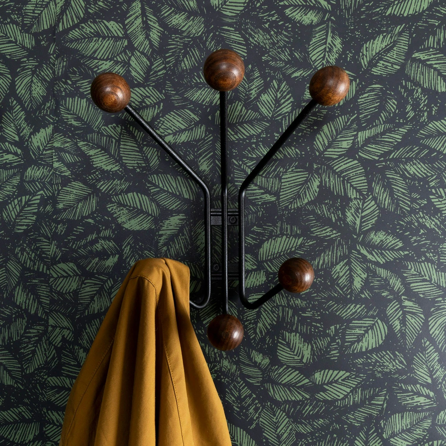 Wall hanger Bill is designed by Louise Hederström for Maze. The hook Bill XS is a slightly smaller hanger than its predecessor in the series, making it suitable for smaller spaces. The hook is made of metal wire and with its six wooden knobs in birch wood, it allows storage of clothes in a simple and practical way. Available in several colours.