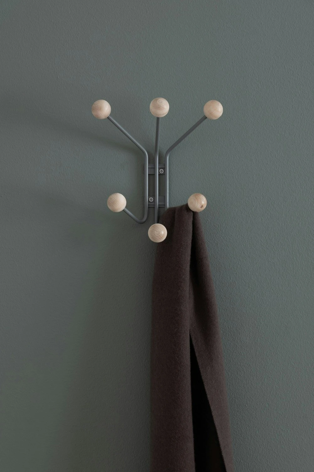 Wall hanger Bill is designed by Louise Hederström for Maze. The hook Bill XS is a slightly smaller hanger than its predecessor in the series, making it suitable for smaller spaces. The hook is made of metal wire and with its six wooden knobs in birch wood, it allows storage of clothes in a simple and practical way. Available in several colours.