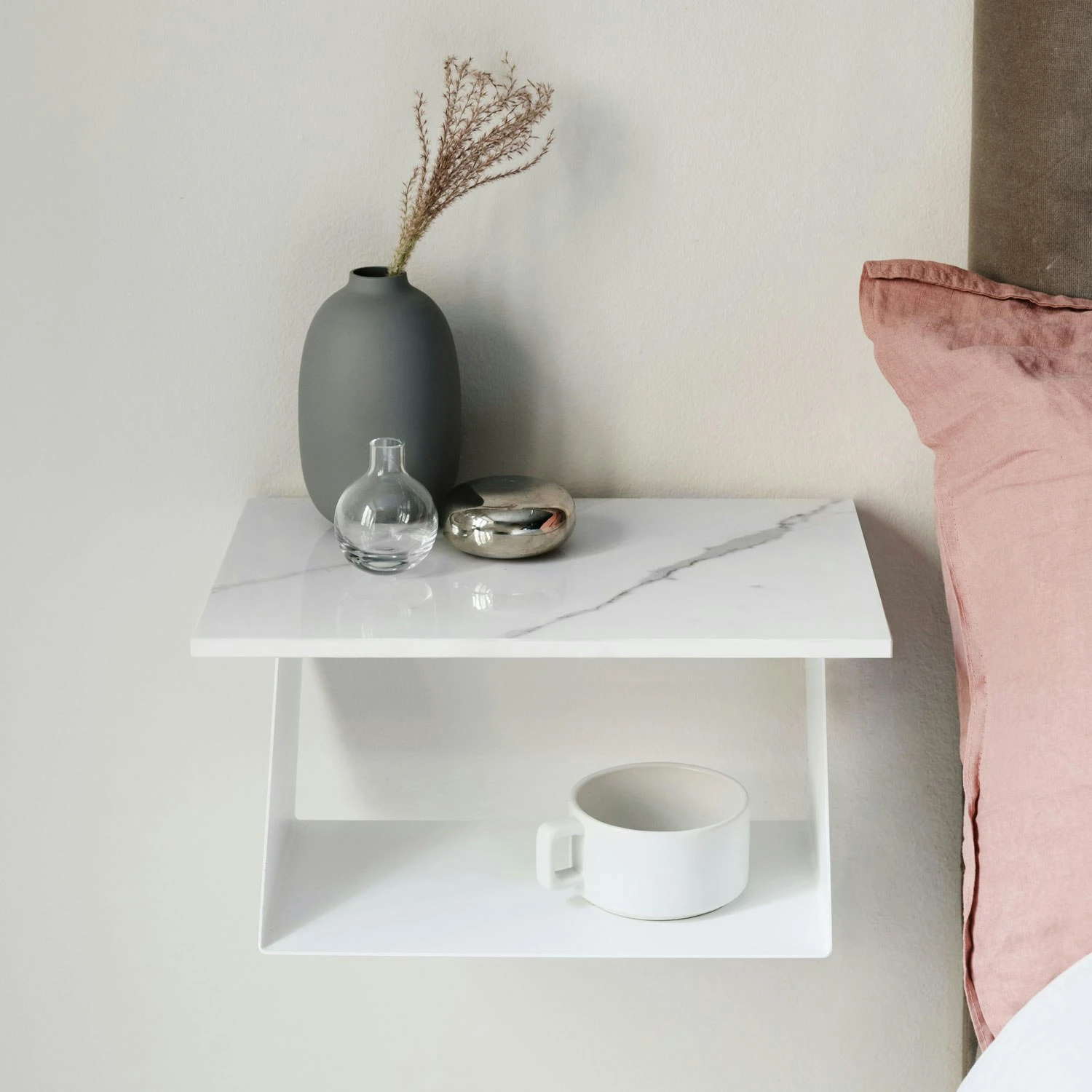 Edgy Edition from Maze, is a Swedish-made shelf with recycled metal and ceramic top. Fits well as a bedside table or as a wall-mounted shelf where storage is needed without taking up floor space, such as in the hall or bedroom.