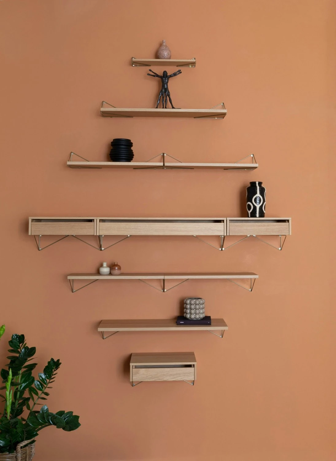 This stylish drawer is part of the Pythagoras shelf system from Maze. It has a practical design and is mounted directly on the wall, which means it does not take up any floor space. By combining products from Pythagoras with different sizes and colours, you can create your own, personal shelf system.