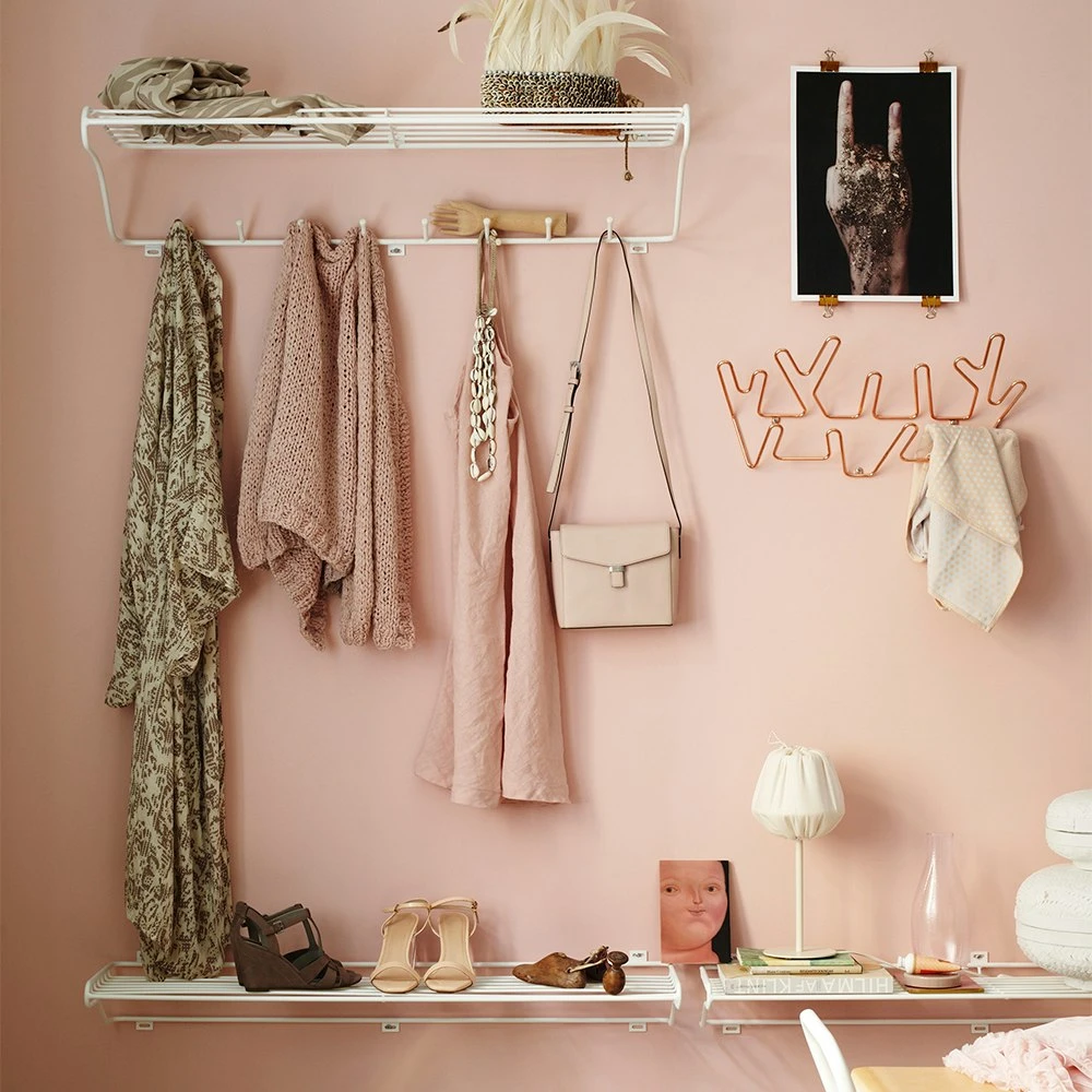 Shoe Shelf is a stylish shoe shelf designed by Olof Kolte for Maze. Made of environmentally friendly wire, it is simple and practical of its kind and fits into most interior environments. Thank you for furnishing both height and width, complementing multiple shelves if the location is insufficient. Available in two sizes. In the same series there are also the Middle Storage Shelf and Hat Rack Hat Shelf.