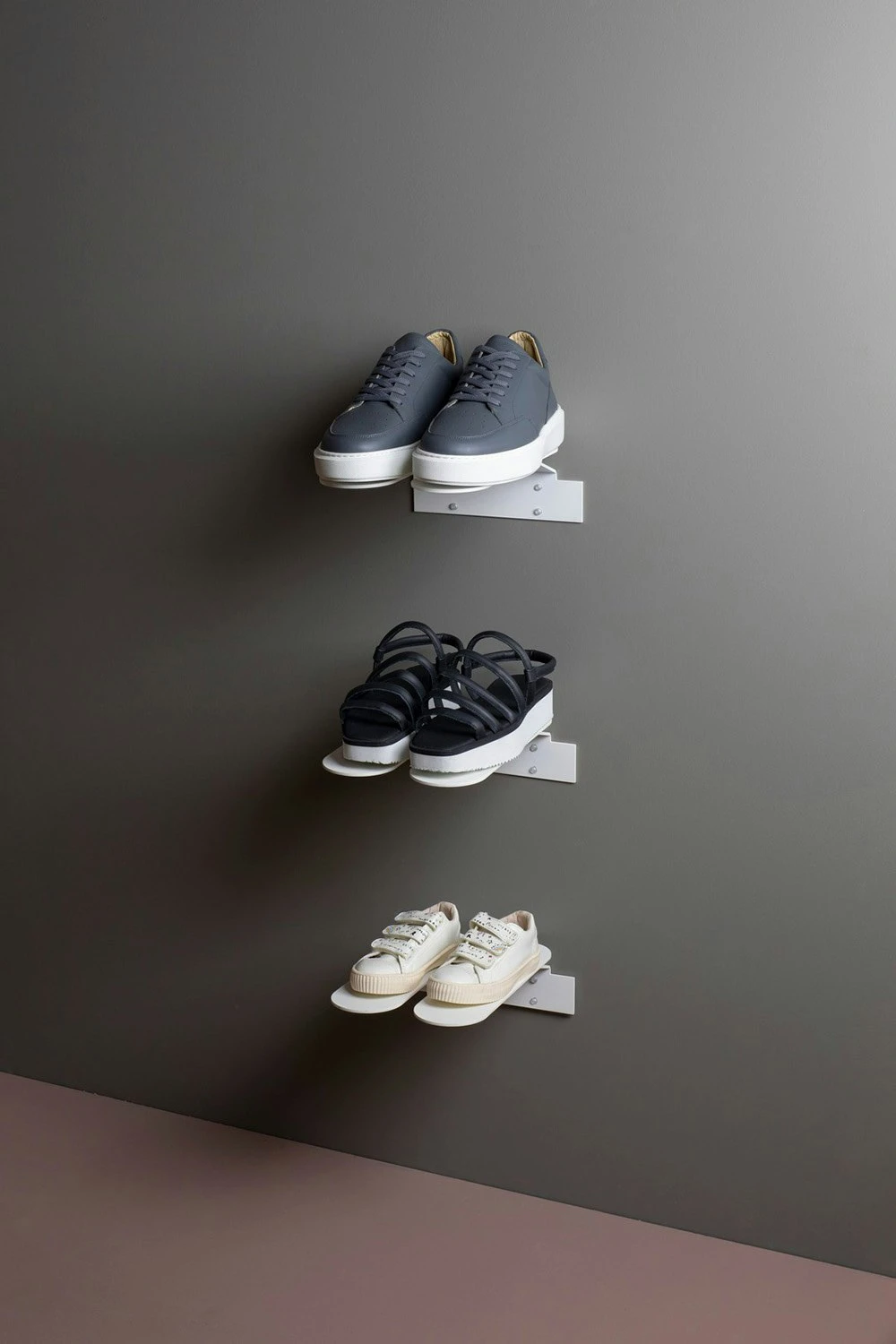 Step Shoe Shelf is designed by Gustav Rosén in 2014. Step S is a smaller variant of Step Shoe Shelf, a stylish shelf that smoothly holds your favourite shoes. The module can be combined with the various shoe shelves in the series, allowing you to create your very own system of shoe shelves. Available in black and white.
