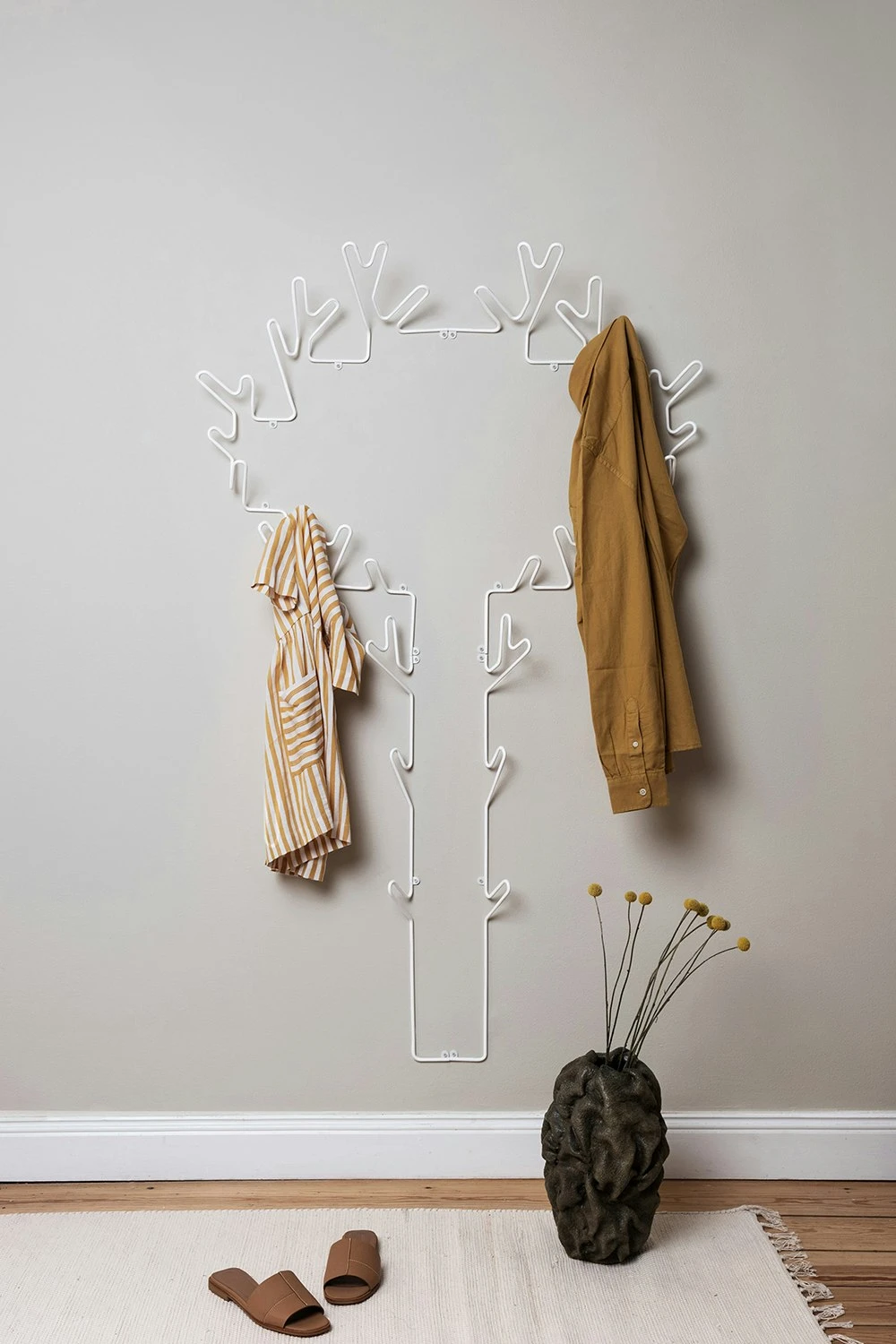 Tree Hanger Hanger was designed by Louise Hederström in 2006. An excellent coat hanger for larger families with the shape of a tree silhouette whose branches act as hooks. The clothes hanger is made of metal wire and is a stylish and decorative alternative to ordinary hooks and storage.