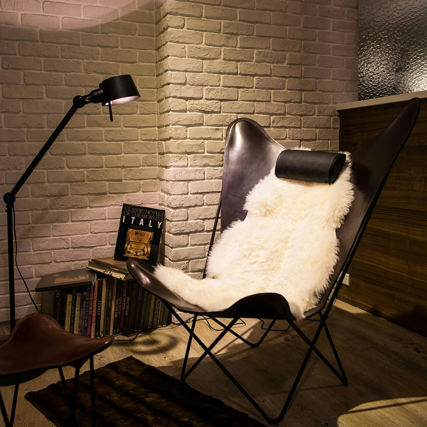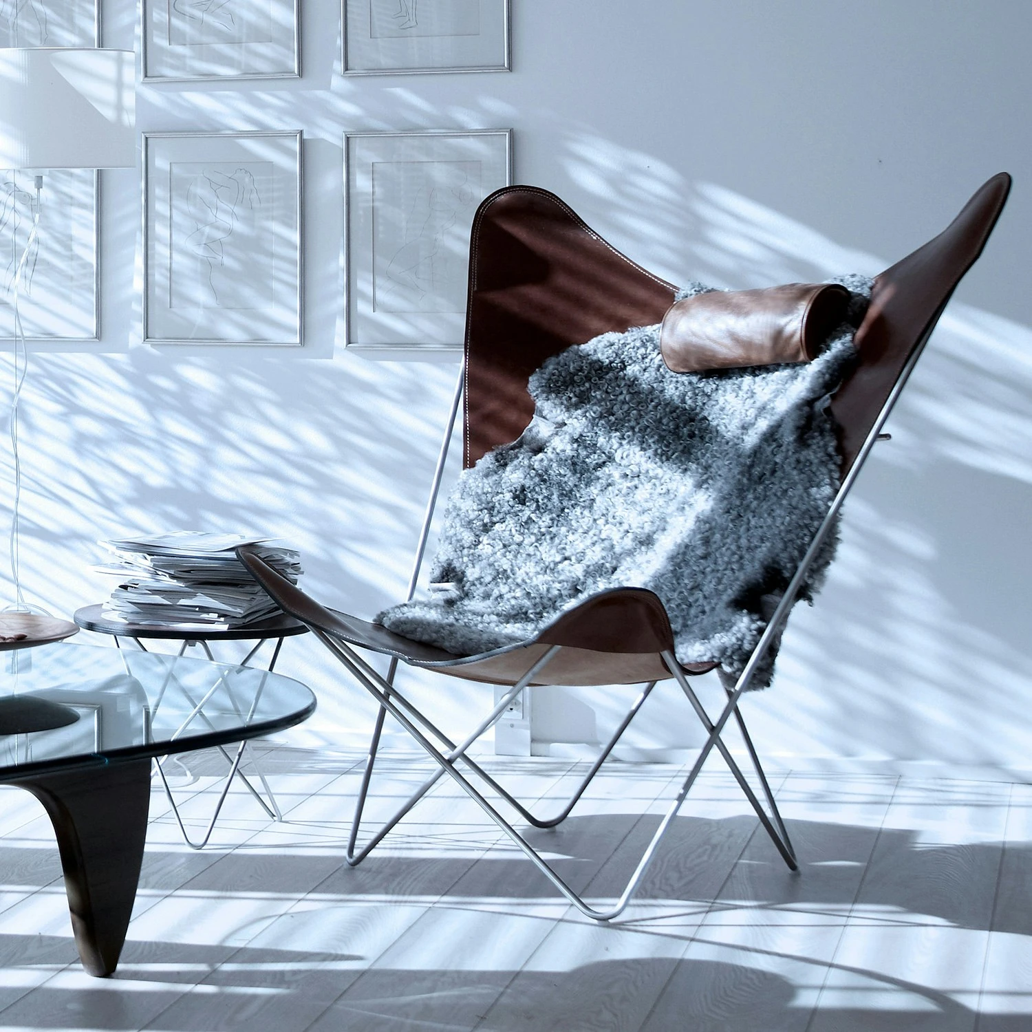 Ox Denmarq works mainly with leather from Spain and the leather surface is not modified. Spanish livestock usually spends most of its life outdoors in nature instead of indoors, which leaves traces such as insect bites and scars. These marks tell a story about the history and reflect a natural product. Each product, therefore, becomes unique and differences in colour and surface occur. Protective gliders must be fixed on the legs of the chair.