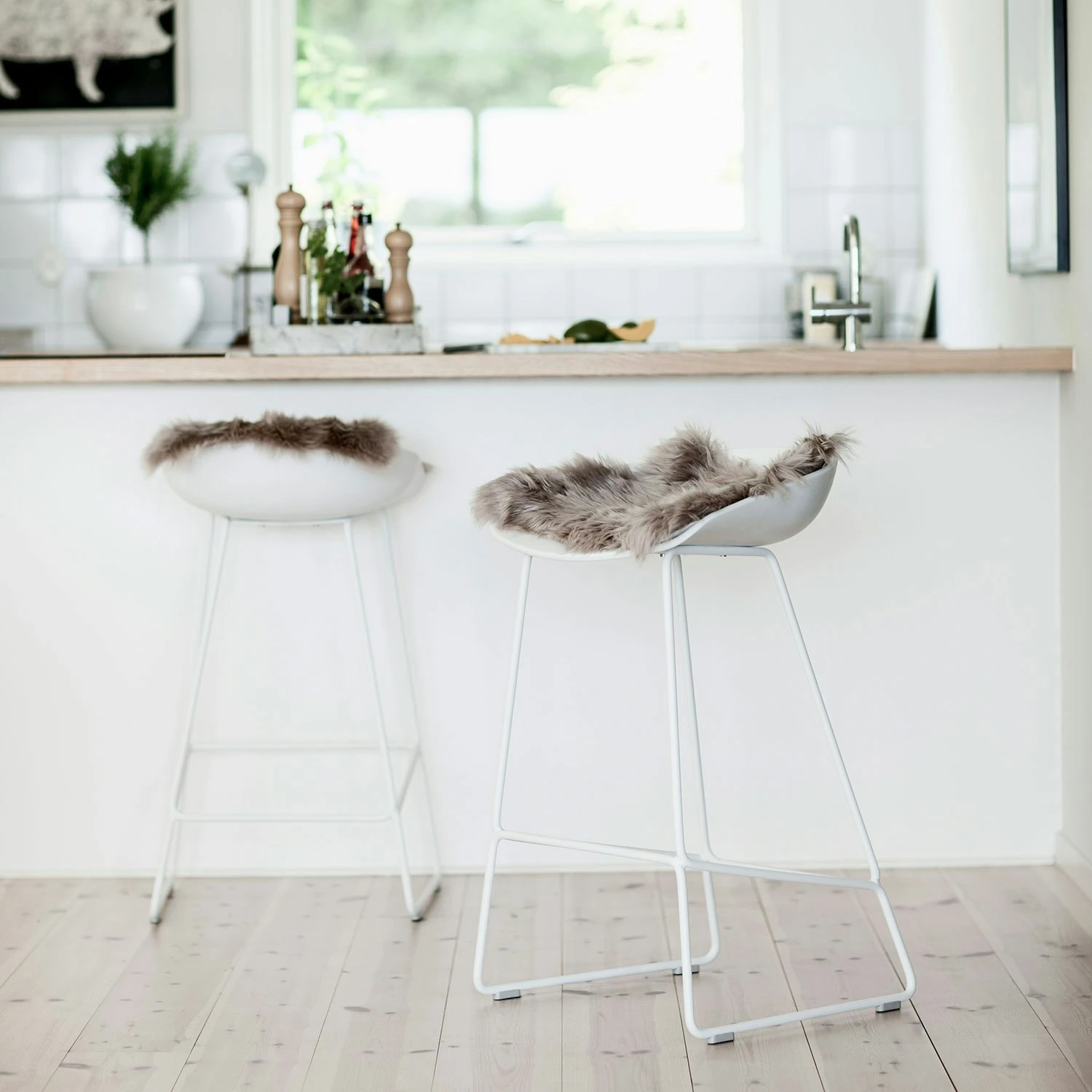 Sheperd Moa. A seat cushion made from long-haired sheepskin of Australian origin. Dyed in different lovely shades. Natural undyed leather back.