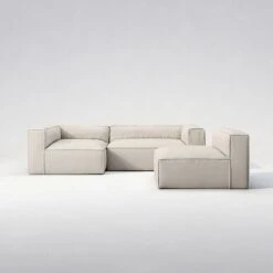 Grand 3 Seater Sofa Divan Left With Armchair Outdoor, Linen Chalk