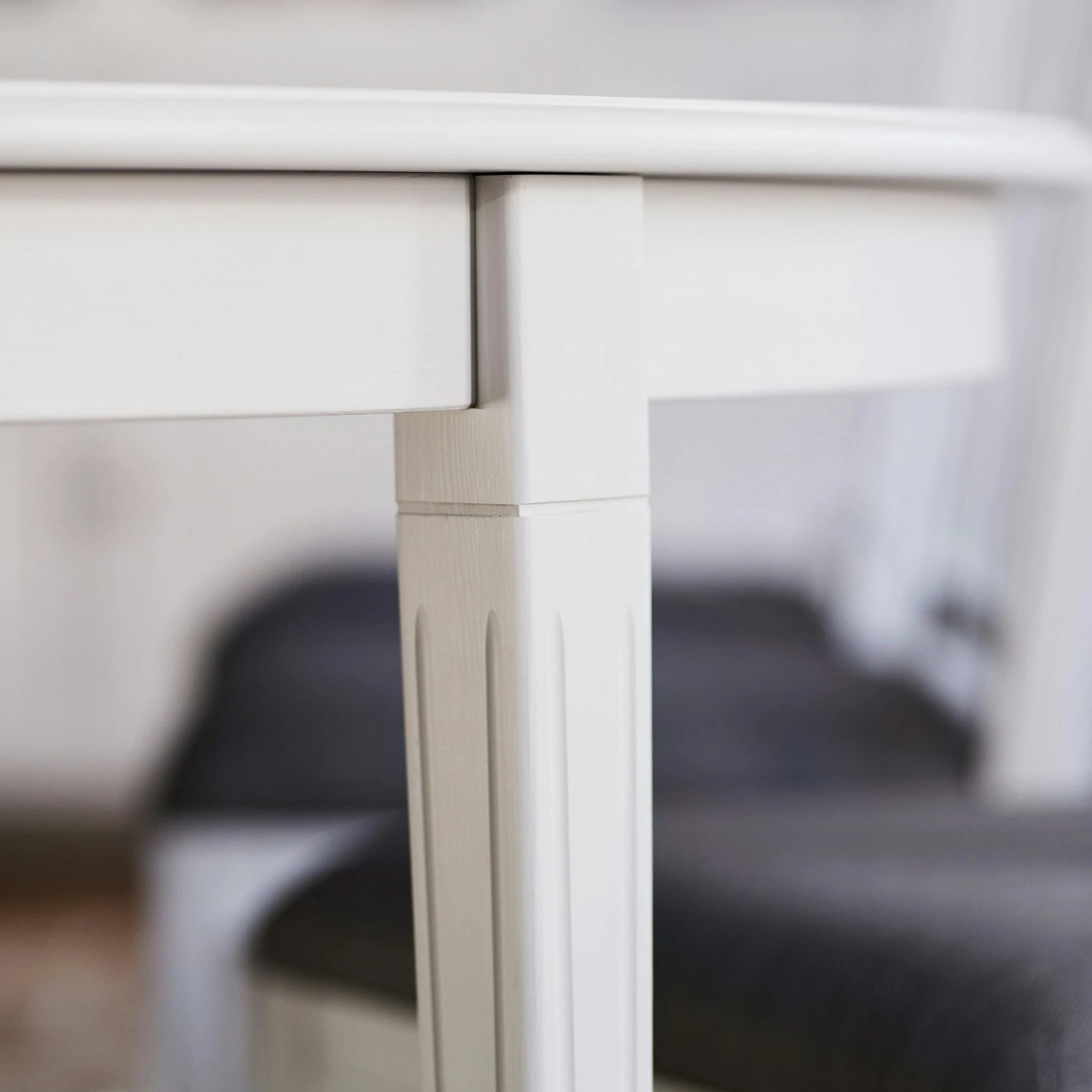 It looks very nice to combine with other furniture in the same series Stockholm 2.0 such as chairs, cabinets and chest of drawers. The dining table is available in three different colours: whitewash, black and grey.