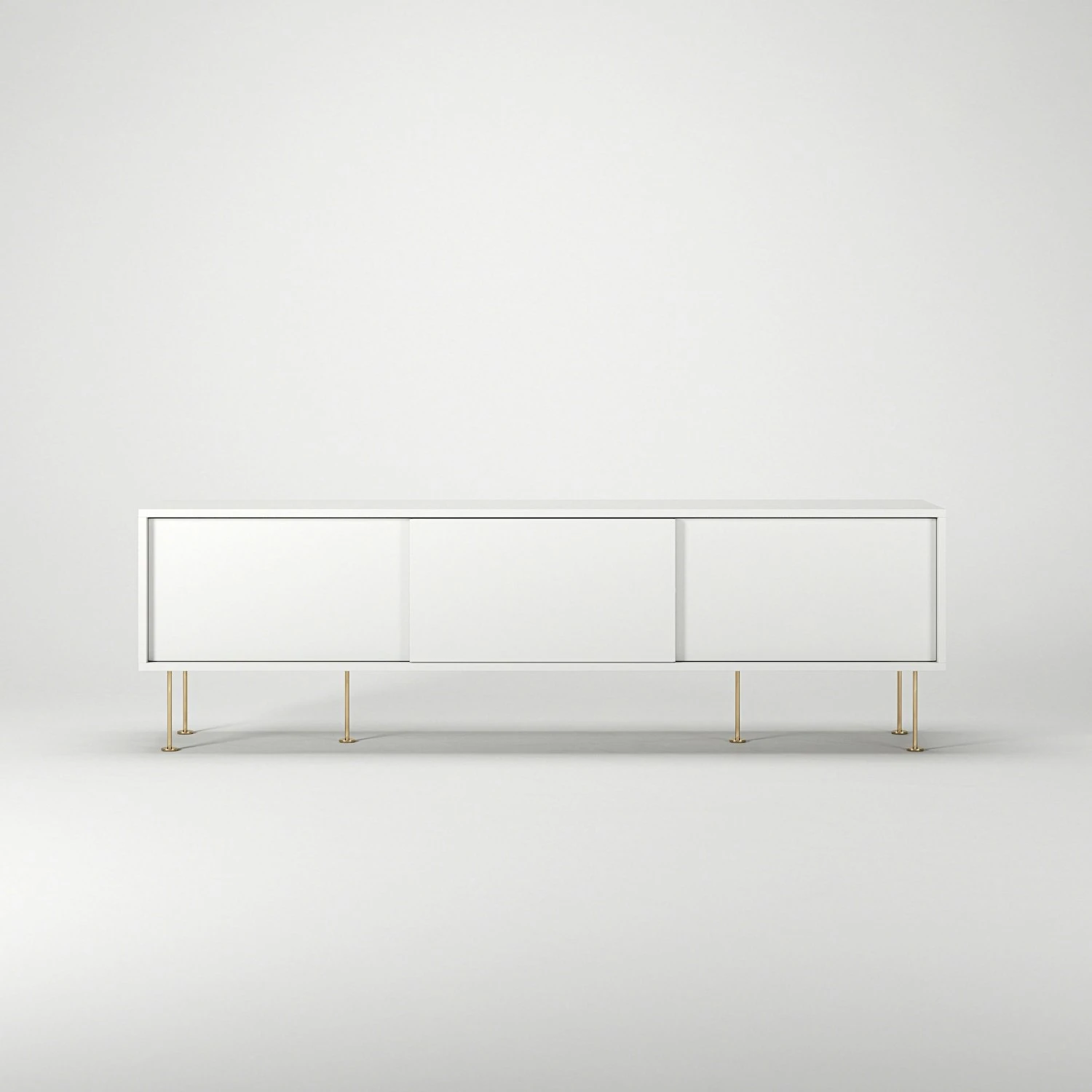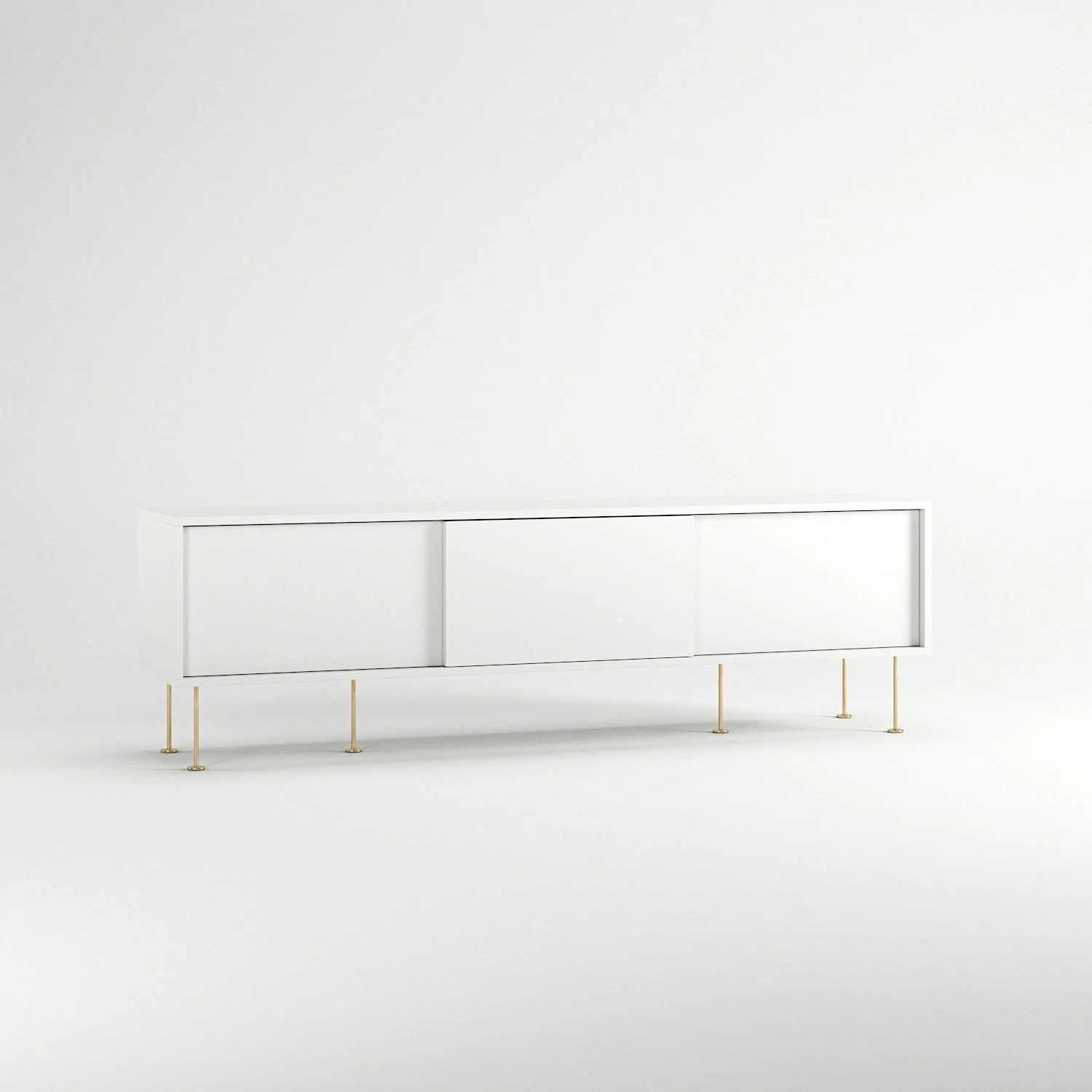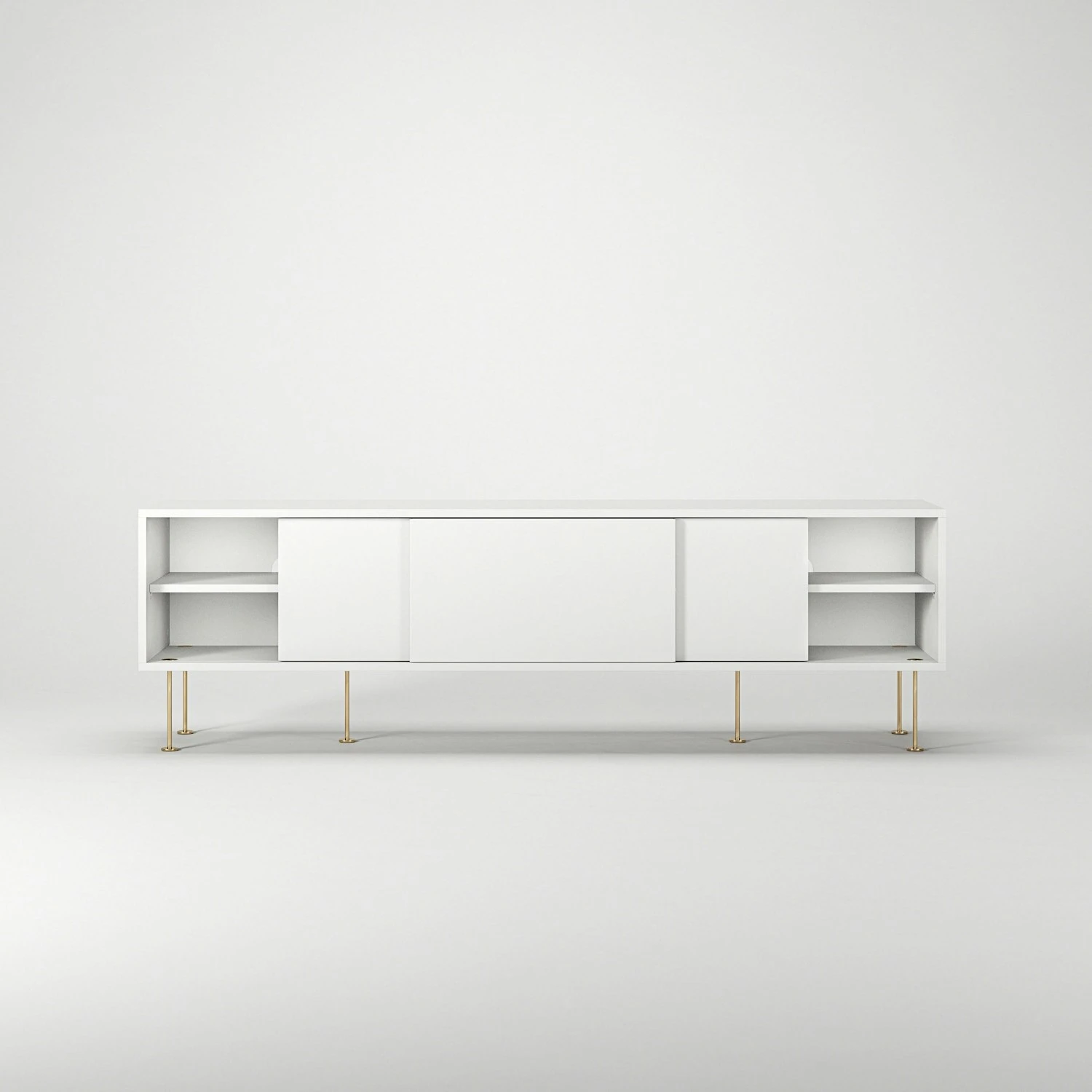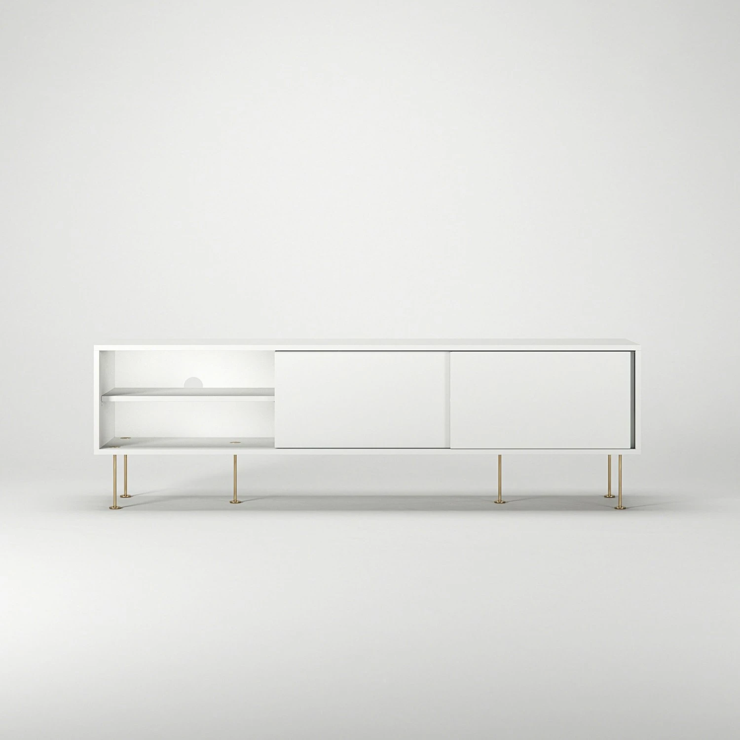 Vogue Media Bench With Legs 180 Cm, White / Brass