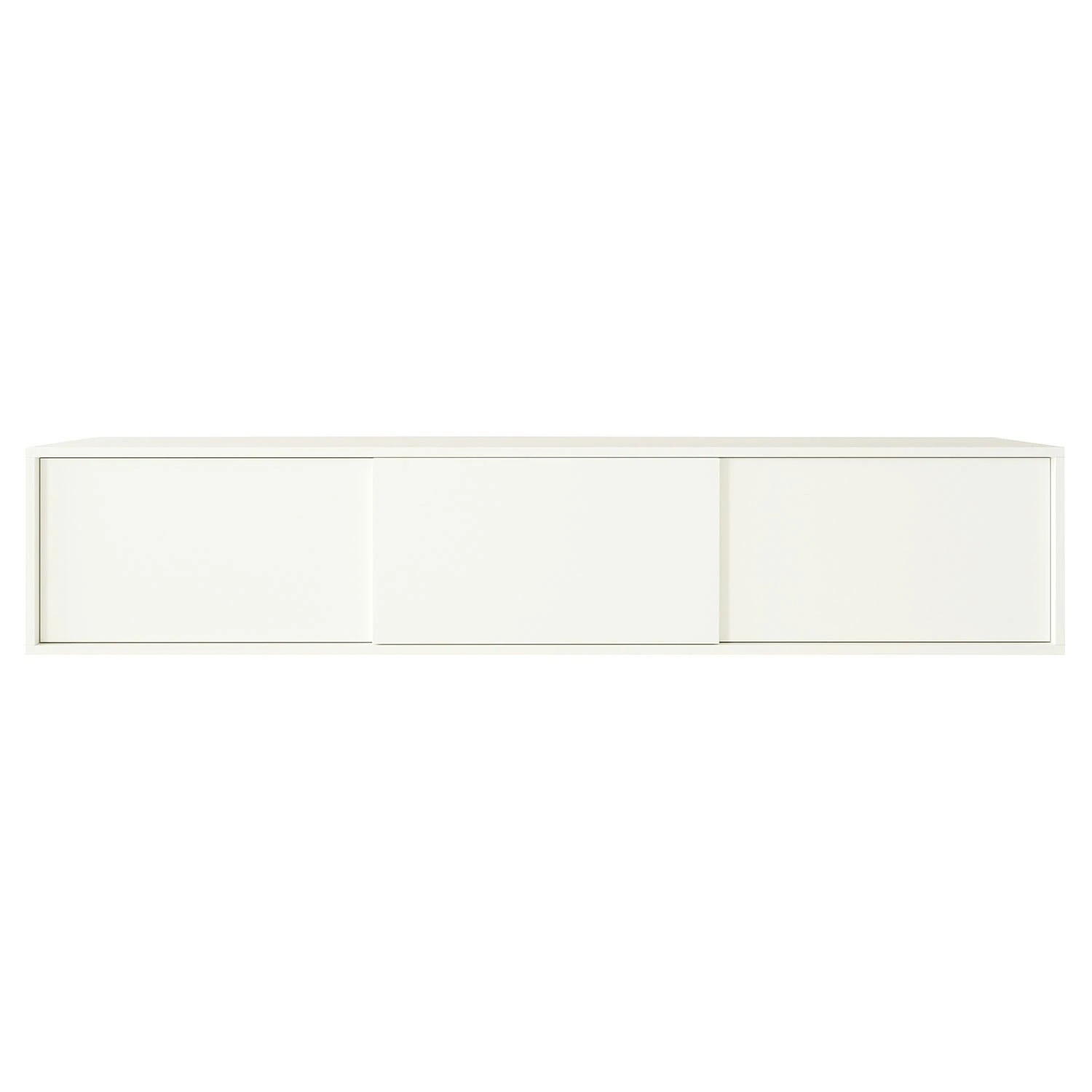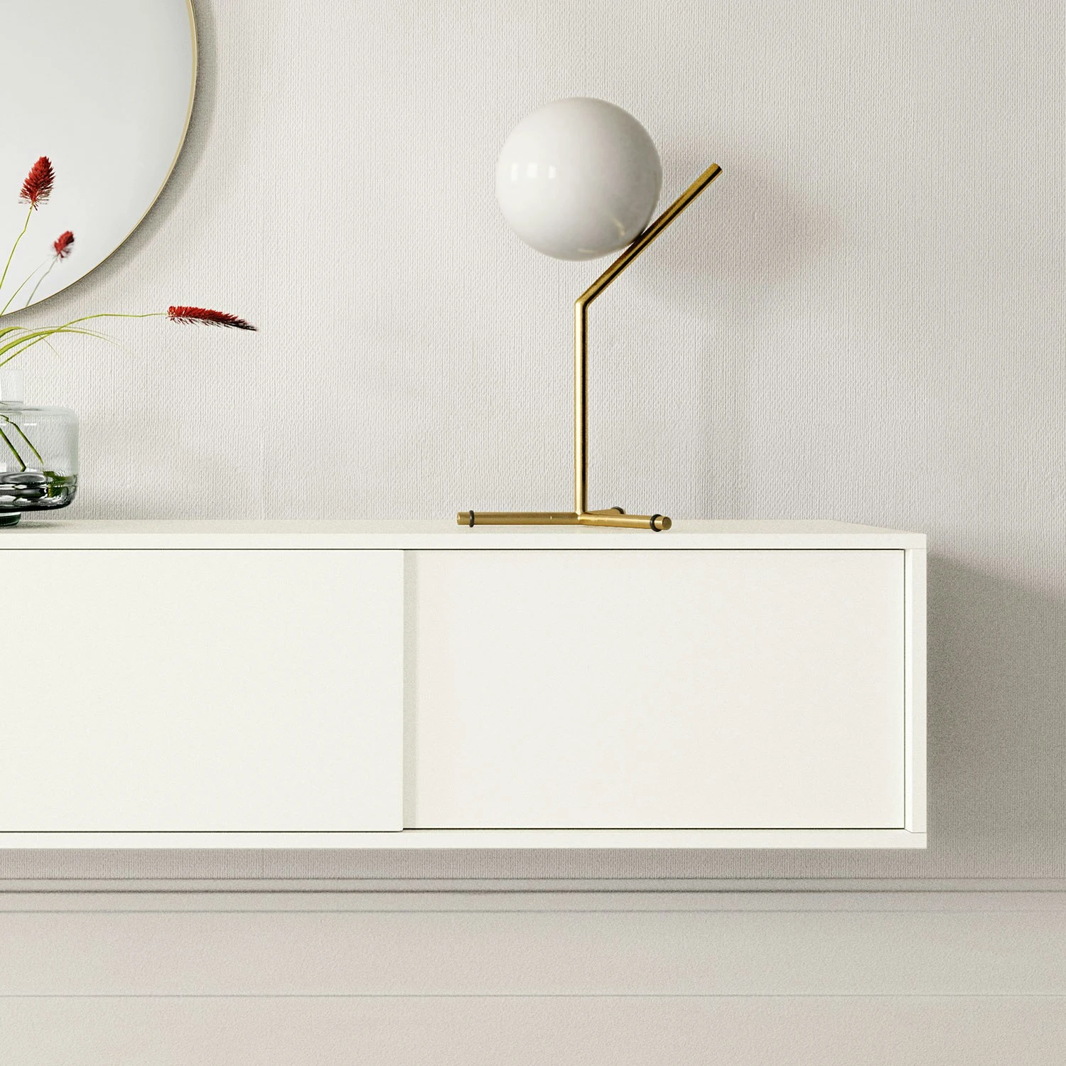 Vogue Wall Cabinet 180 from Decotique. A modern and stylish wall-mounted storage in Scandinavian design, equipped with elegant doors with sliding function. Behind each door, an adjustable shelf is concealed, that provides a spacious area for storage. On each side, there is also an opening at the back for easy handling of cables.