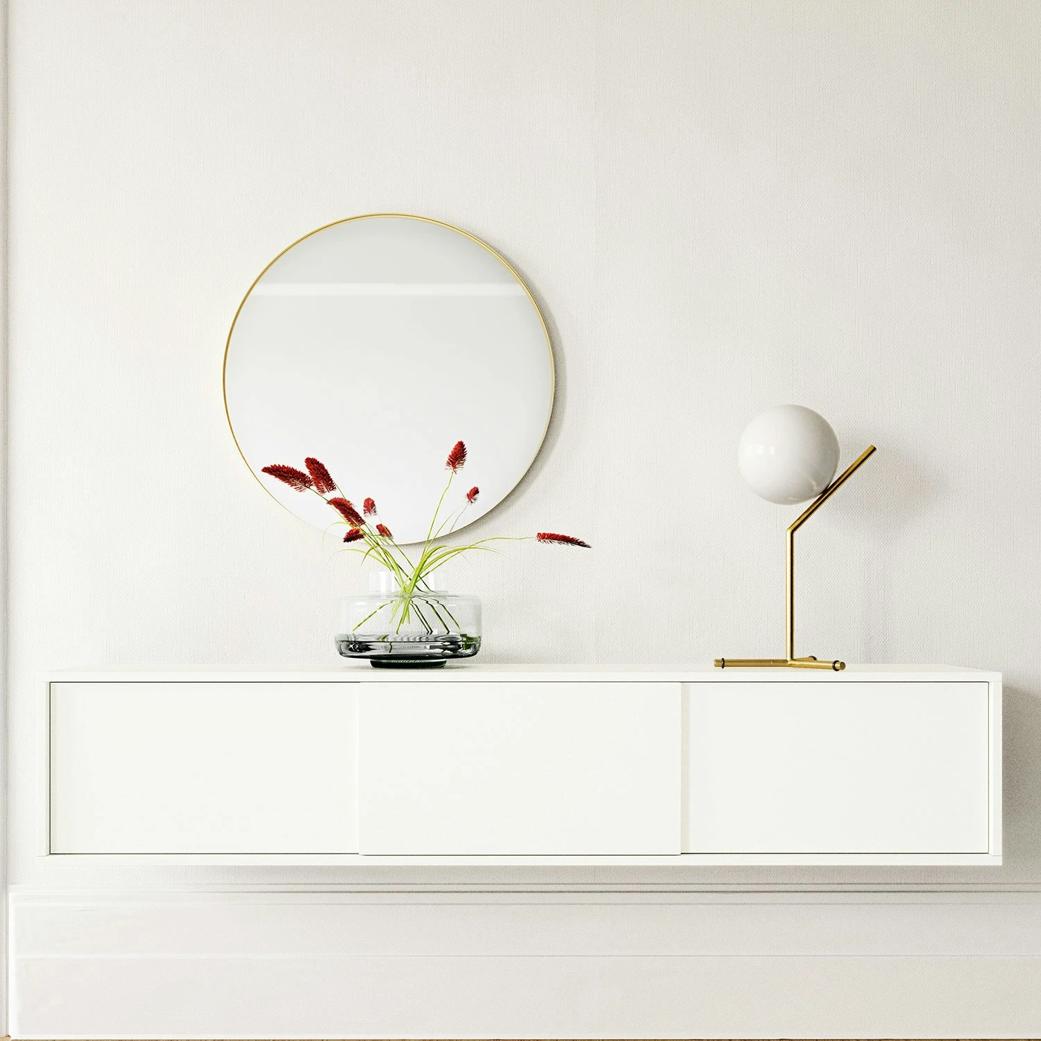 Frame: Painted MDF. Doors: Brass coloured aluminum and /or painted MDF.