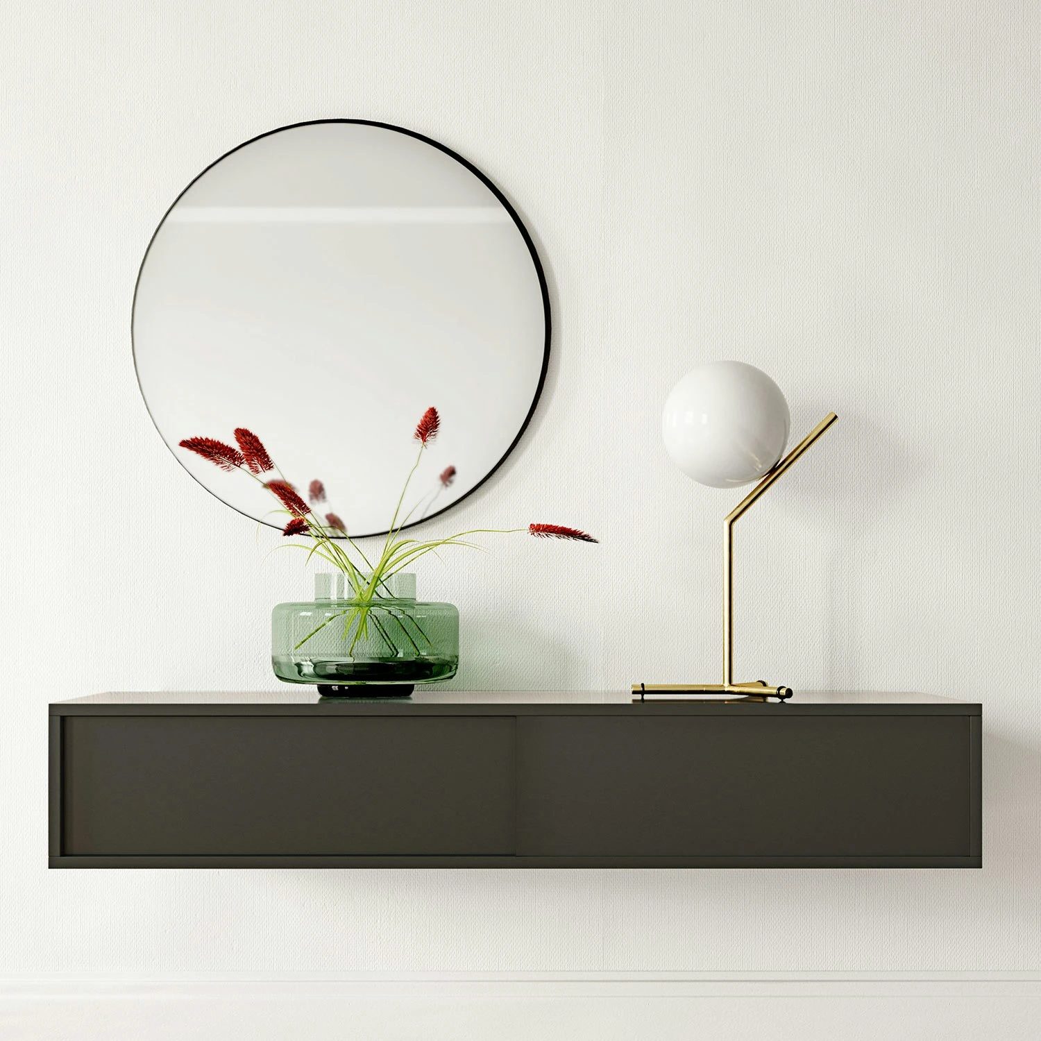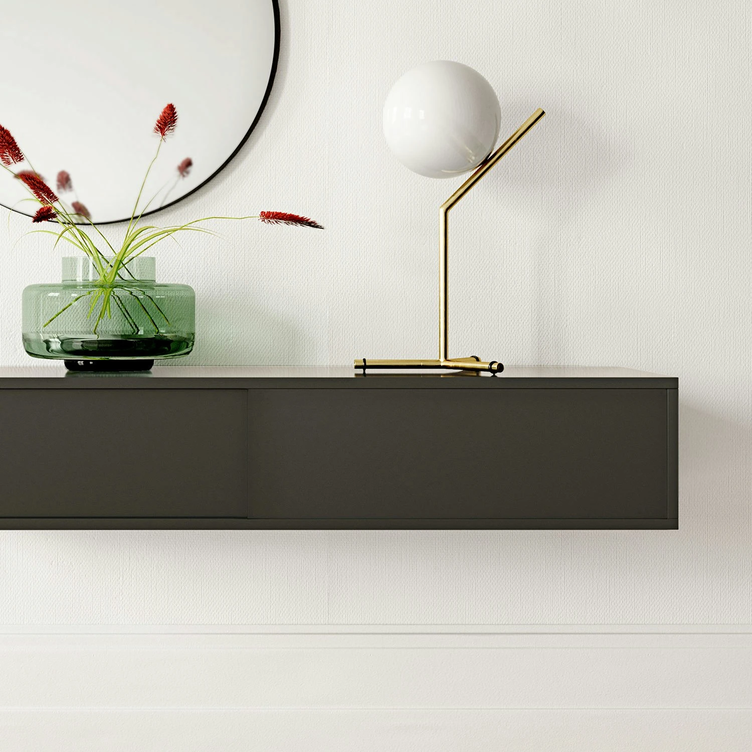 Vogue Wall, a wall-mounted Decotique cabinet, available in several designs and sizes. Vogue Wall Cabinet Petite is a smaller version that has no shelves. A modern and stylish wall-mounted storage in Scandinavian design equipped with sliding doors. On the backside, there is a hole to pull out cables if desired.