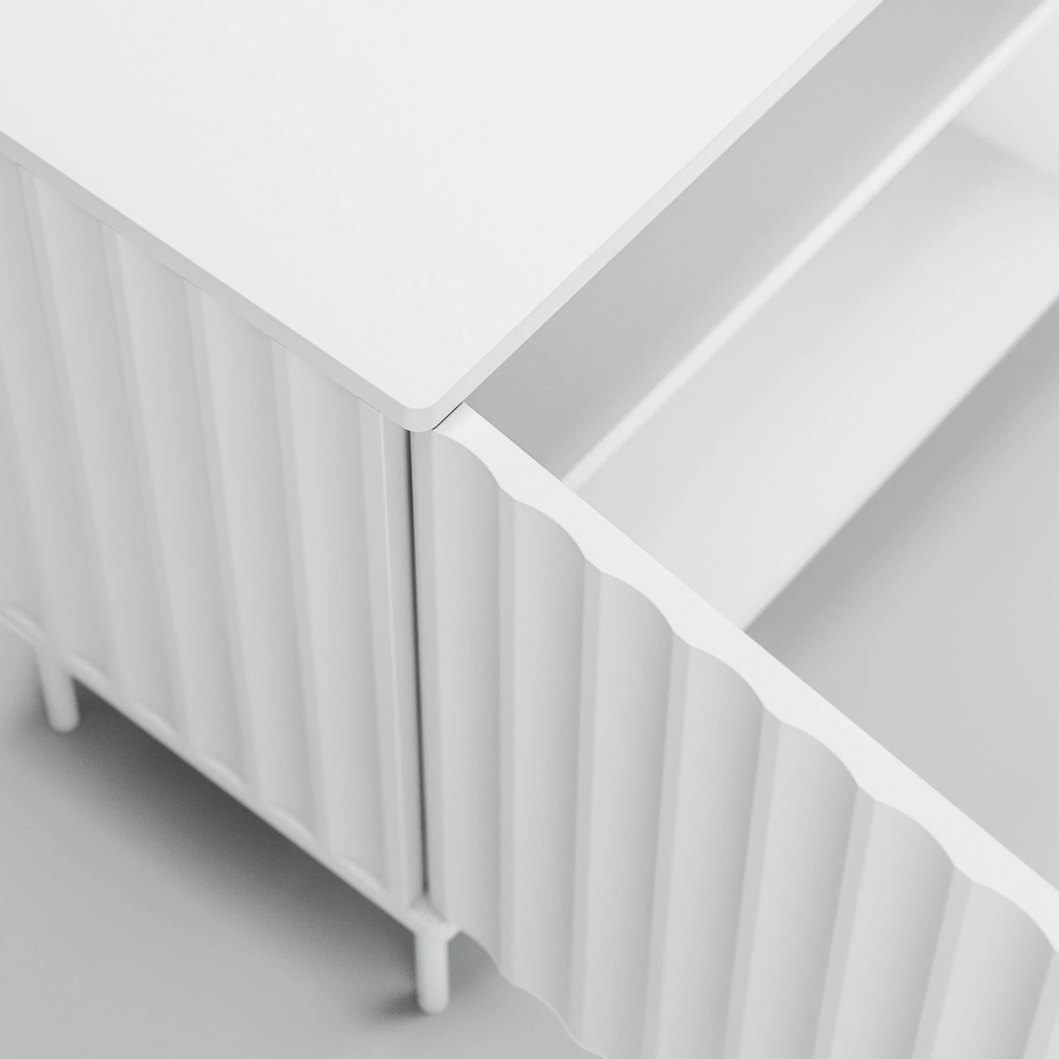 - Lacquered MDF (The one in anthracite has a top in stained oak)